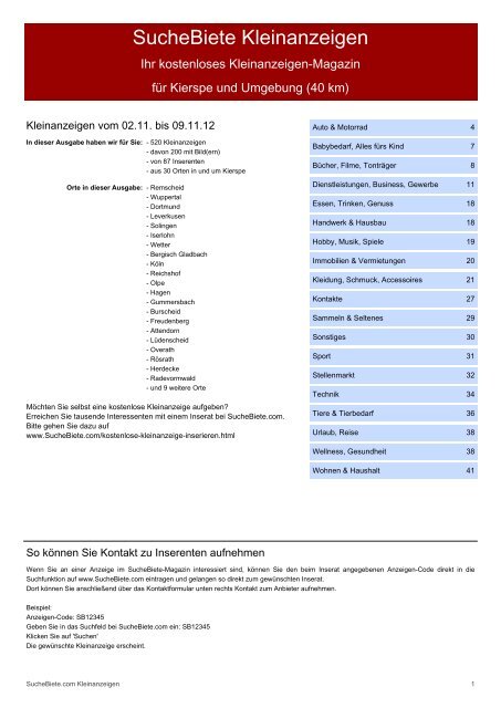 Suchebiete Kleinanzeigenzeitung Kierspe Kostenlose Kleinanzeigen