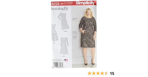 Simplicity Pattern 8258 Bb 20w 28w Misses And Plus Size Amazing Fit Dress Paper White 22 X 15 X 1 Cm Amazon Co Uk Home Kitchen